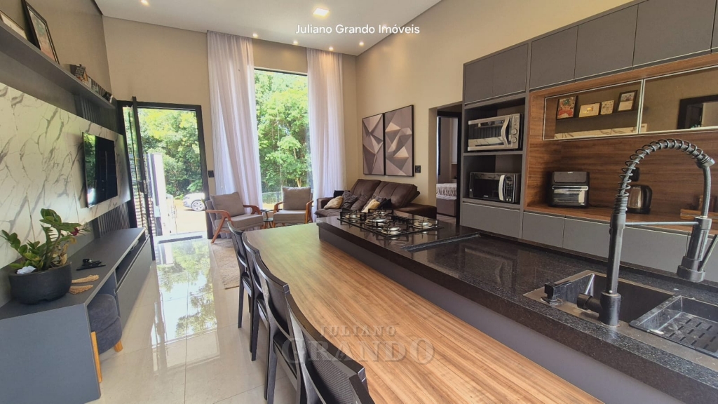 Casa térrea, com apenas 1 ano de construção, totalmente mobiliada, pensada nos mínimos detalhes, com móveis de muito bom gosto e qualidade.