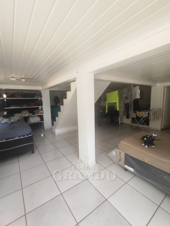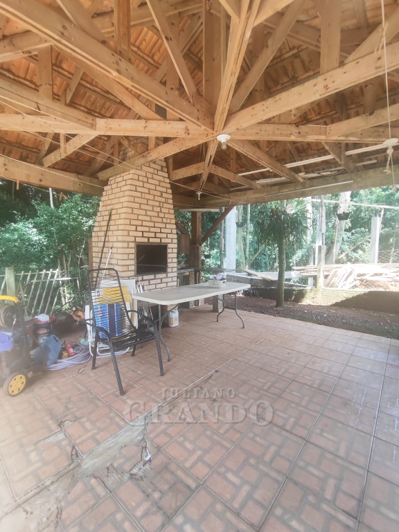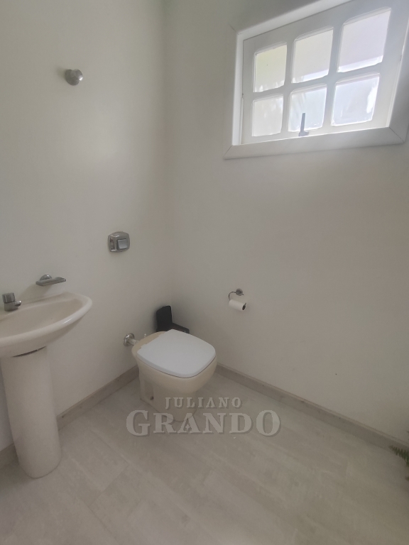 Salão de festas com churrasqueira no térreo e um banheiro social;