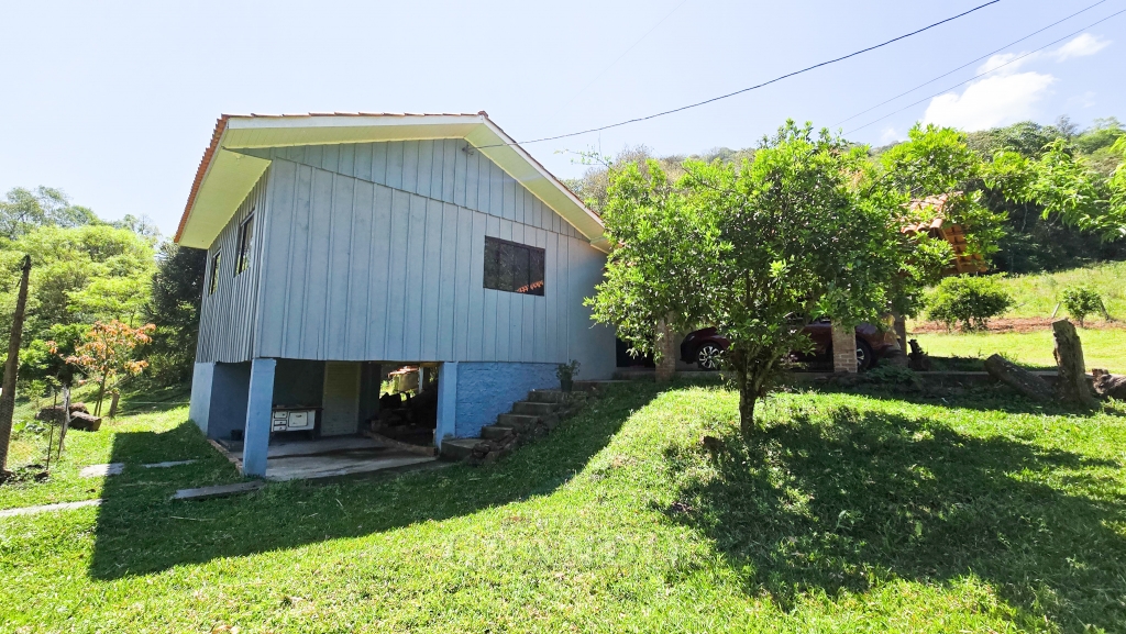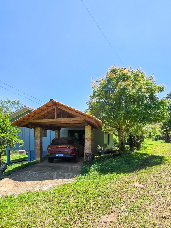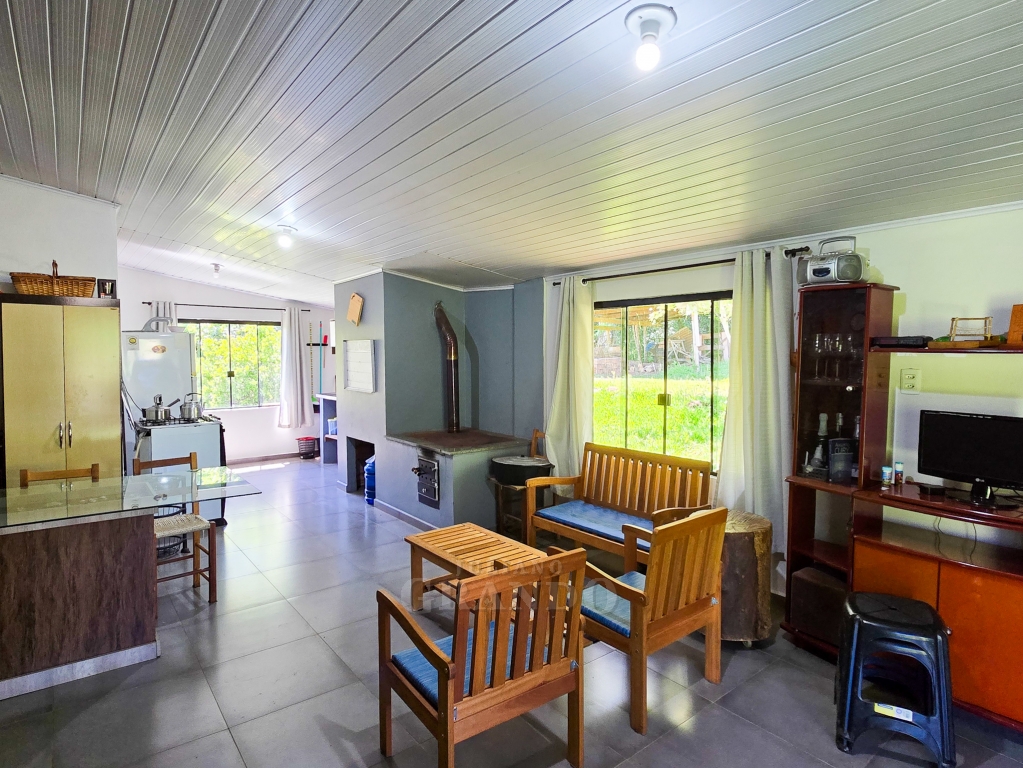 Possui uma casa aconchegante de 80 m², com 2 dormitórios, 1 sala e 1 banheiro, mais 1 sala integrada com cozinha, churrasqueira e fogão campeiro ,1 lavabo.