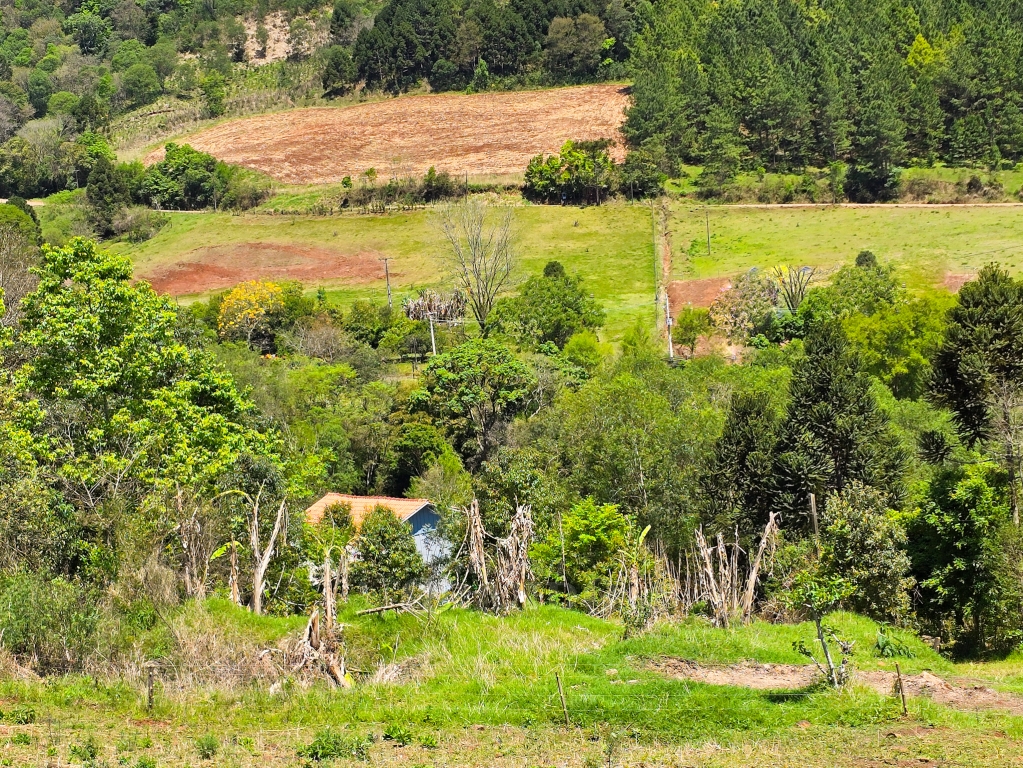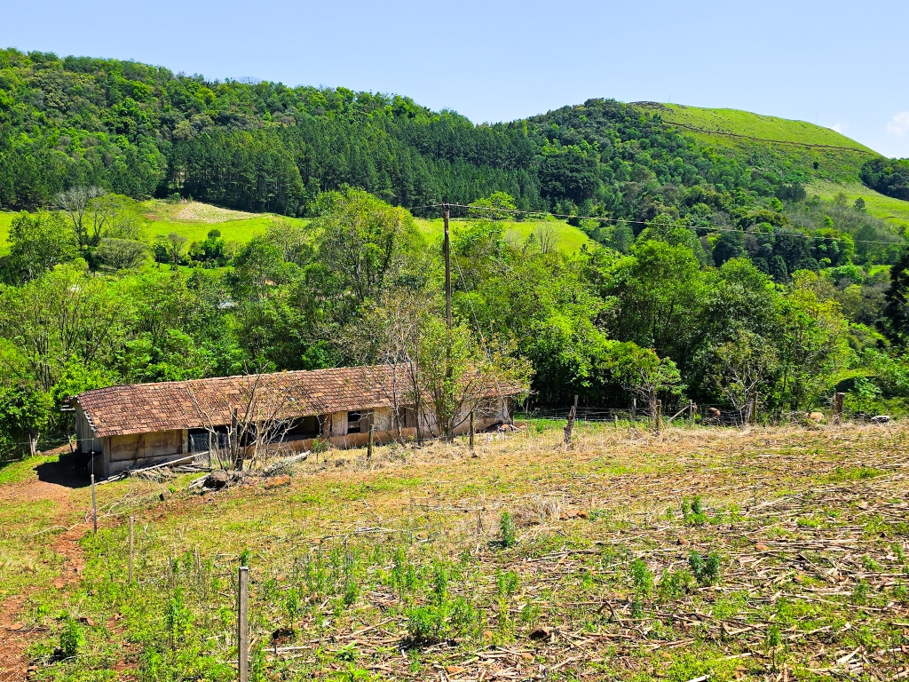 Árvores frutíferas, fonte natural de água, 2 hectares de terra plantável, área para criação de gado, galpão em madeira com 130m² .