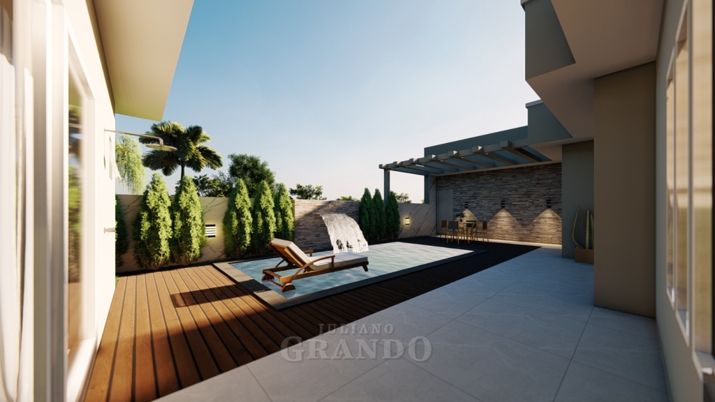 Casa de alto padrão composta por 3 dormitórios, sendo 1 suíte com closet e 2 suítes semi-semi, todos os cômodos com esperas para climatização e persianas automatizadas, operadas por controle remoto;